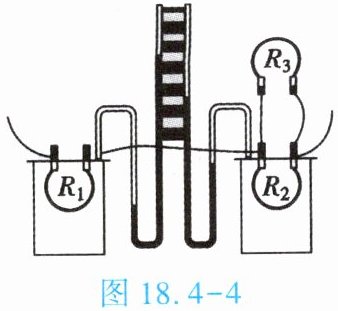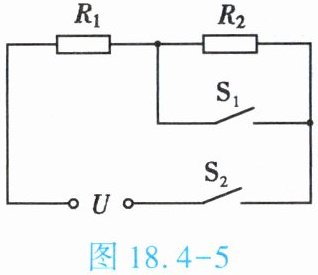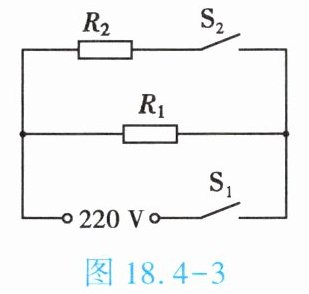 3. (★★)如图 18.4 - 3 所示是某电蒸锅的内部简化电路图,电热丝的电阻分别为 $ R_1 = 484\ \Omega $、$ R_2 = 44\ \Omega $。当开关 $ S_1 $、$ S_2 $ 均闭合时,通过电阻为 $ R_1 $、$ R_2 $ 的两电热丝的电流之比 $ I_1 : I_2 = $