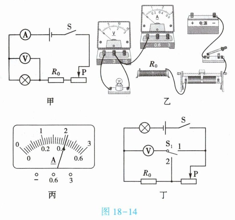 (2)正确连接电路后进行实验,记录的实验数据如下表所示。当电压表示数为 2.5 V 时,电流表示数如图 18 - 14 丙所示,小灯泡的额定功率为____W。