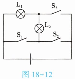 9. (★★★)如图 18 - 12 所示,两个灯泡的规格完全相同,电源电压不变,且灯泡的额定电压等于电源电压。只闭合开关$ S_3,$电路的总功率为$ P_1;$只断开开关$ S_2,$电路的总功率为$ P_2;$只闭合开关$ S_2,$电路的总功率为$ P_3。$下列判断正确的是【