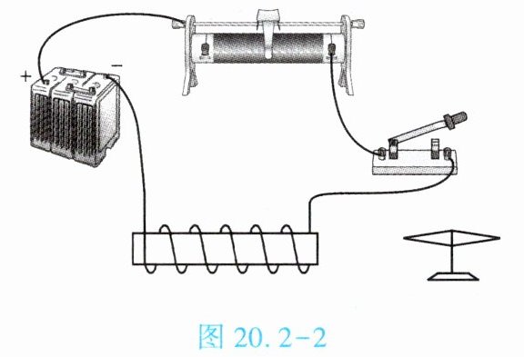 3. (★★)用图20.2-2所示的装置可以探究通电螺线管的极性是否与电流方向有关。小磁针放在螺线管(沿东西方向放置)的某一端。
