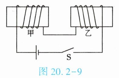 5. (★★★)如图20.2-9所示,甲、乙两线圈套在光滑的玻璃棒上。当开关S闭合时,两线圈将【