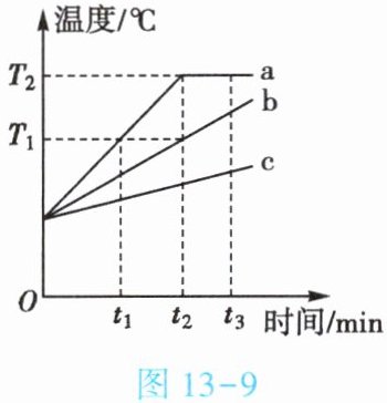 9. (★★★)(双选)用相同的加热装置分别对固态物质a、b、c加热,它们的温度随加热时间变化的关系如图13-9所示。不计热量损失,以下分析正确的是【