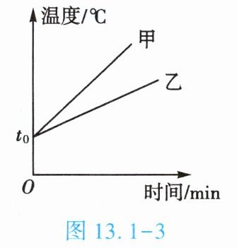 1. (★★)两个相同的容器中分别装入质量相等的甲、乙两种液体,使用相同的热源为其加热,液体温度与加热时间的关系如图 13.1 - 3 所示,若甲、乙两液体吸收相同的热量,则