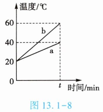 8. (★★★)(双选)用相同的电加热器分别对质量相等的 a 和 b 两种液体加热(不计热量损失),如图 13.1 - 8 所示是 a 和 b 的温度随加热时间变化的图像。下列说法正确的是【