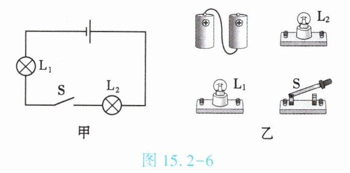5. (★★)请你根据图15.2-6甲的电路图,用笔画线表示导线,将图15.2-6乙的实物连接完整。