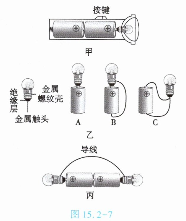 。(2)在“用一节干电池、导线使一个小灯泡发光”的活动中,图15.2-7乙中三种做法可行的是