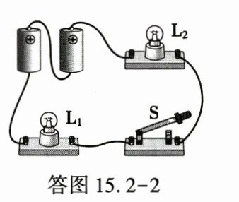 (3)在“怎样使两个小灯泡都亮起来”的活动中,采用如图15.2-7丙所示的方法连接,两个小灯泡都亮了。请在虚线框内画出相应的电路图。