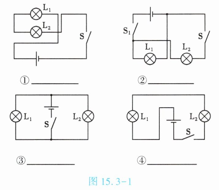 1. (★★)把图 15.3 - 1 中灯泡 $ L_1 $ 与 $ L_2 $ 的连接方式填写在横线上。