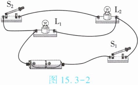 2. (★★)如图 15.3 - 2 所示电路,只闭合开关 $ S_1 $,灯