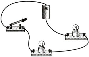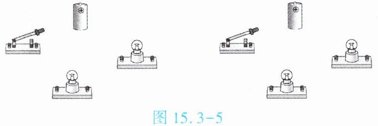 5. (★★★)给出两个灯泡、一节电池、若干导线和一个开关,如图 15.3 - 5 所示,请你用两种不同的接法设计电路,使开关闭合后两个灯泡同时发光。