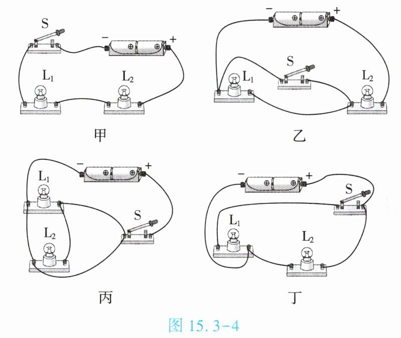4. (★★★)实验小组的同学连接了如图 15.3 - 4 所示的四个电路来探究开关的控制作用,下列判断正确的是【
