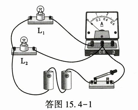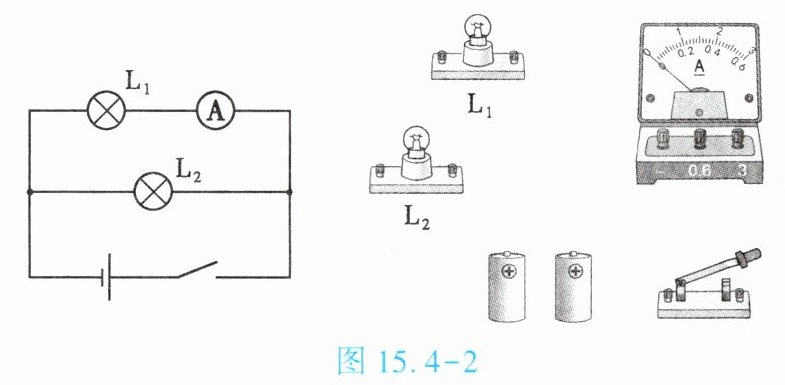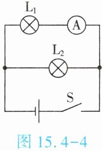 2. (★★)如图15.4 - 4所示的电路图,闭合开关S,两盏灯都发光,电流表测量的是通过灯