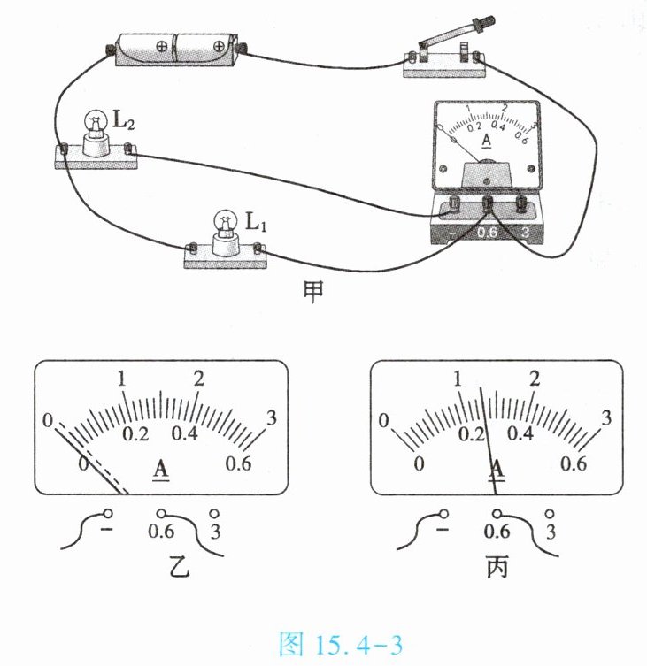 (3)排除故障后,闭合开关,电流表的示数如图15.4 - 3丙所示,则读数是