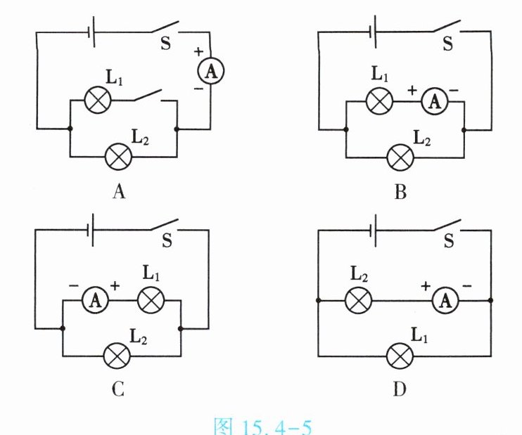 3. (★★)如图15.4 - 5所示的电路图中,可以测出灯$L_1$中电流的是【