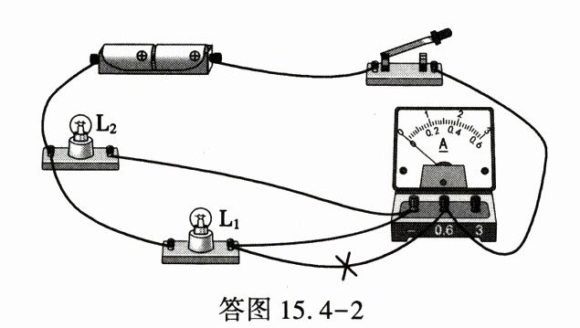(4)只要改动一根导线就可以测量干路中的电流,请在图15.4 - 3甲中用“×”号指出需改动的导线,并用笔画线表示导线作出改动。