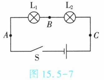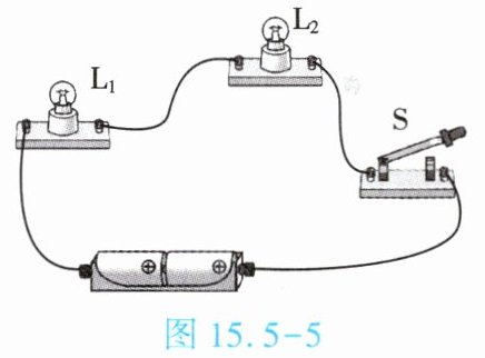 2. (★★)如图 15.5 - 5 所示,小红同学将两个灯泡串联接在电源上,闭合开关 S,灯泡$ L_2 $发出了很强的光,灯泡$ L_1 $却发出较弱的光。下列有关说法正确的是【