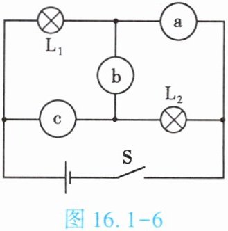 2. (★★)如图16.1-6所示,若两灯$L_1、$$L_2$串联,则电表a是