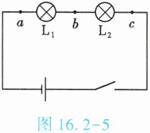 3. (★★)如图 16.2 - 5 所示,在“探究串联电路中用电器两端电压与电源两端电压的关系”时,小雨同学用电压表测出 $ ab $、$ bc $、$ ac $ 两端的电压分别为 $ U_{ab} = 3 $ V,$ U_{bc} = 3 $ V,$ U_{ac} = 6 $ V,在表格中记录数据后,下一步应该做的是【