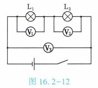 6. (★★★)用如图 16.2 - 12 所示电路图来探究串联电路电压特点时: