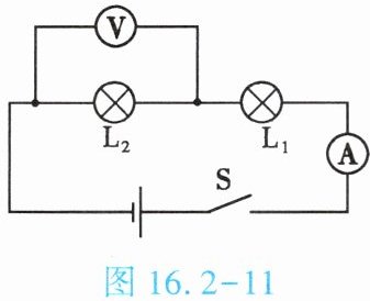5. (★★★)(双选)如图 16.2 - 11 所示的电路图中,开关 $ S $ 闭合后,发现电流表的指针偏转,电压表的指针没有偏转,则可能出现的故障是【