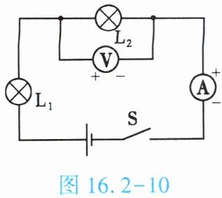 2. (★★)如图 16.2 - 8 所示的电路图中,开关 $ S $ 闭合时,电压表的示数为 $ 4.5 $ V;开关 $ S $ 断开时,电压表的示数为 $ 3 $ V,则此时小灯泡 $ L_1 $ 和 $ L_2 $ 两端的电压分别是