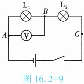 3. (★★)如图 16.2 - 9 所示的电路图中,先用电压表测量小灯泡 $ L_1 $ 两端的电压,当改为测量小灯泡 $ L_2 $ 两端的电压时,只将电压表接 $ A $ 点的一端改接到 $ C $ 点,这种接法