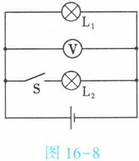 1. (★★)如图 16 - 8 所示的电路图中,电源电压恒为 3 V,两灯泡规格相同。当闭合开关 S 时,电压表的示数