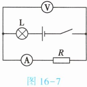 8. (★★★)小明按图 16 - 7 连接电路,各元件原来均正常工作,过一会儿,两电表示数均变大,且电路中除了灯泡 L 和电阻为 R 的电阻器及其连接,电路中其他部位连接均无问题,电表也是完好的,则【