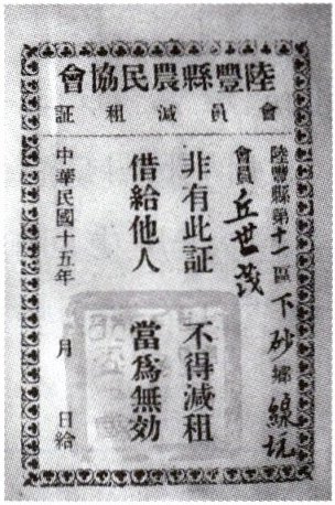 5. (2024·广东改编) 下图是中华民国15年广东陆丰县农民协会减租证。该史料可用于研究【 】