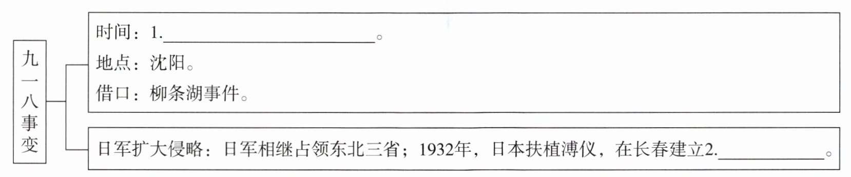 日军扩大侵略:日军相继占领东北三省;1932年,日本扶植溥仪,在长春建立2.______。|