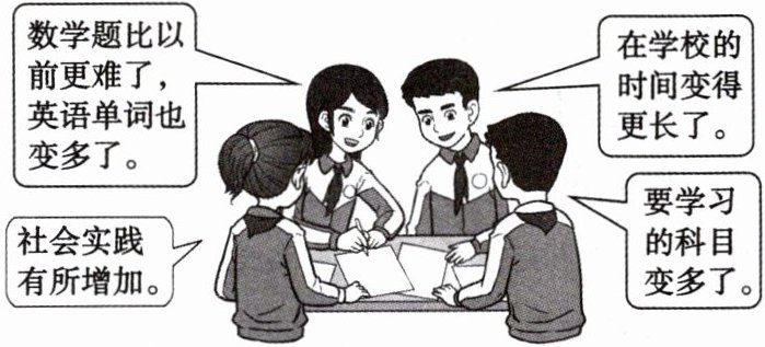 在“分享初中新变化”环节,同学们纷纷发言,表达自己对初中生活的看法: