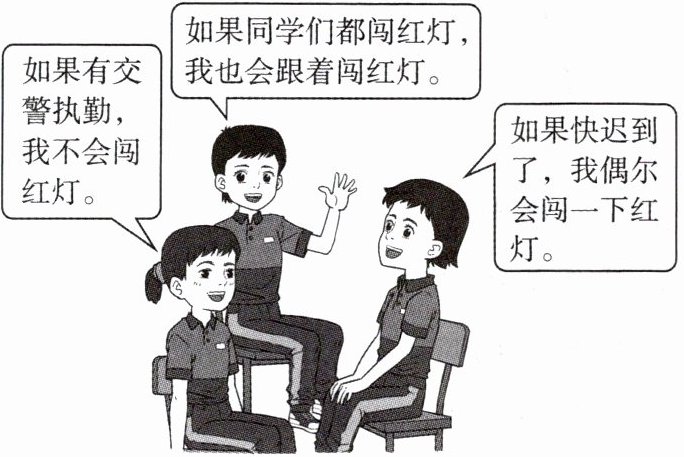 7. 围绕闯红灯这件事,班会课上,同学们发表了各自的看法: