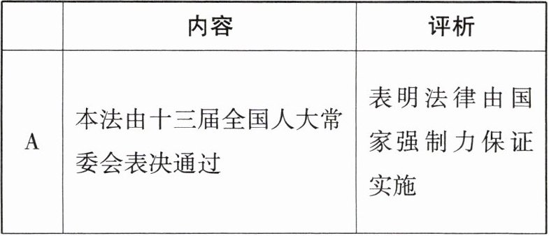 | A | 本法由十三届全国人大常委会表决通过 | 表明法律由国家强制力保证实施 |