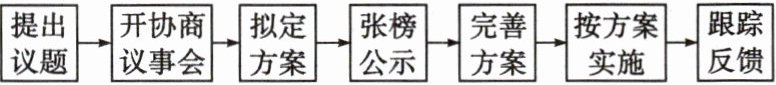 提出议题→开协商议事会→拟定方案→张榜公示→完善方案→按方案实施→跟踪反馈