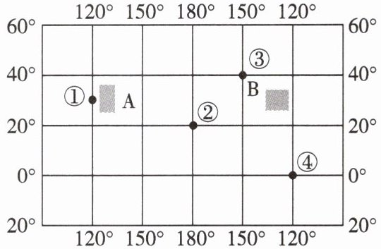 1. 地球表面任一地点的位置,可以用相交于该点的经线和纬线确定,用经纬度表示。图中A点的经纬度位置为