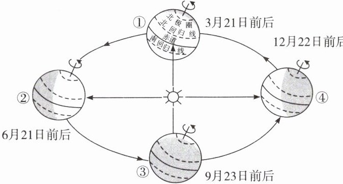 的方向缓慢移动一周,移动过程中,地轴的倾斜方向保持不变