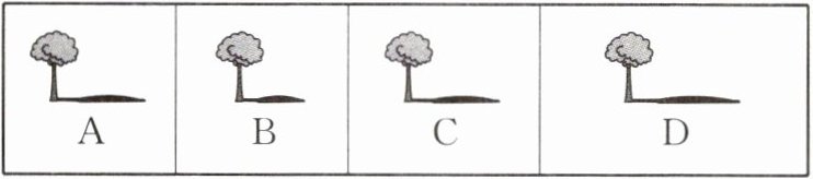 扬州(32°N,119°E)某中学地理兴趣小组的同学分别在春分、夏至、秋分、冬至这四天对同一棵树正午的树影做了记录(如下图)。