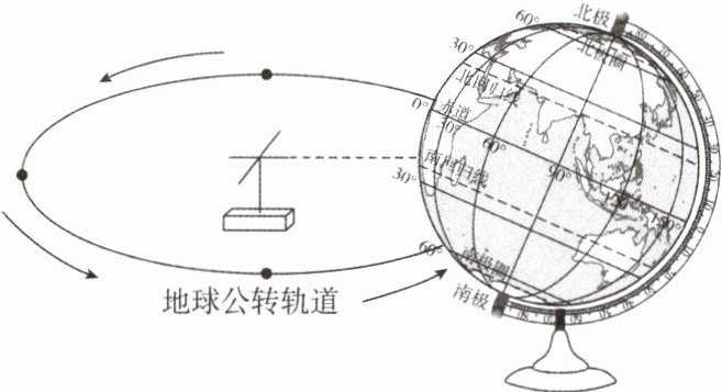 1. 读地球公转示意图(支架顶部的十字架代表太阳光线),为了保证演示成功,移动地球仪的过程中,我们需要注意的事项有(