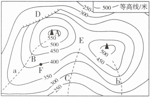 。(2)图中F点的海拔是