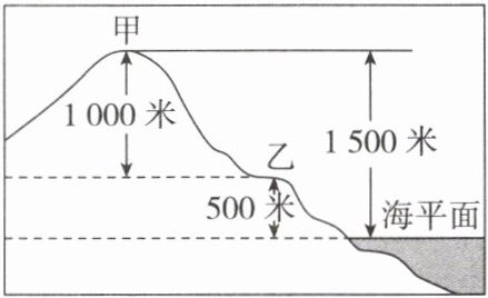 (2)某个地点高出另一个地点的垂直距离,叫相对高度。甲、乙两地的相对高度是