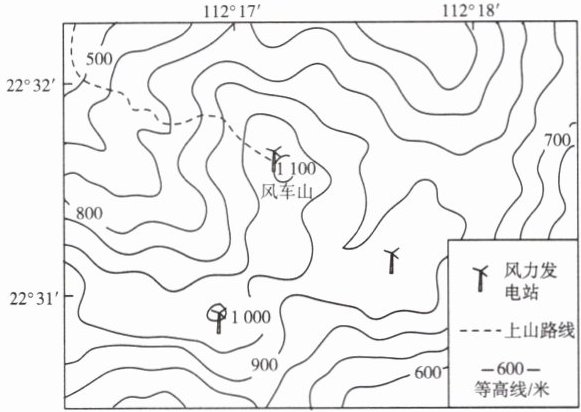 广东省云浮市新兴县风车山附近风力发电站众多。广东省首个纯光伏基站(基于光伏发电技术来供电的通信基站)就建在风车山上。某学校暑假期间组织了高山基站研学活动。读图,回答8~9题。
