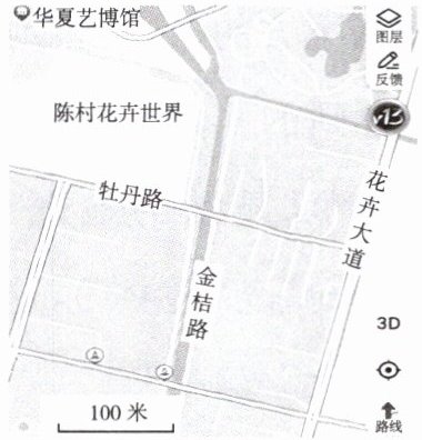 佛山市的小明周末想和朋友去陈村花卉世界游玩,下图为他查阅的电子地图。读图,回答9~10题。