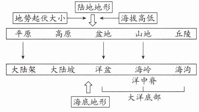 2. ①大陆架,②大陆坡,③海沟,④洋盆,⑤大洋中脊。
