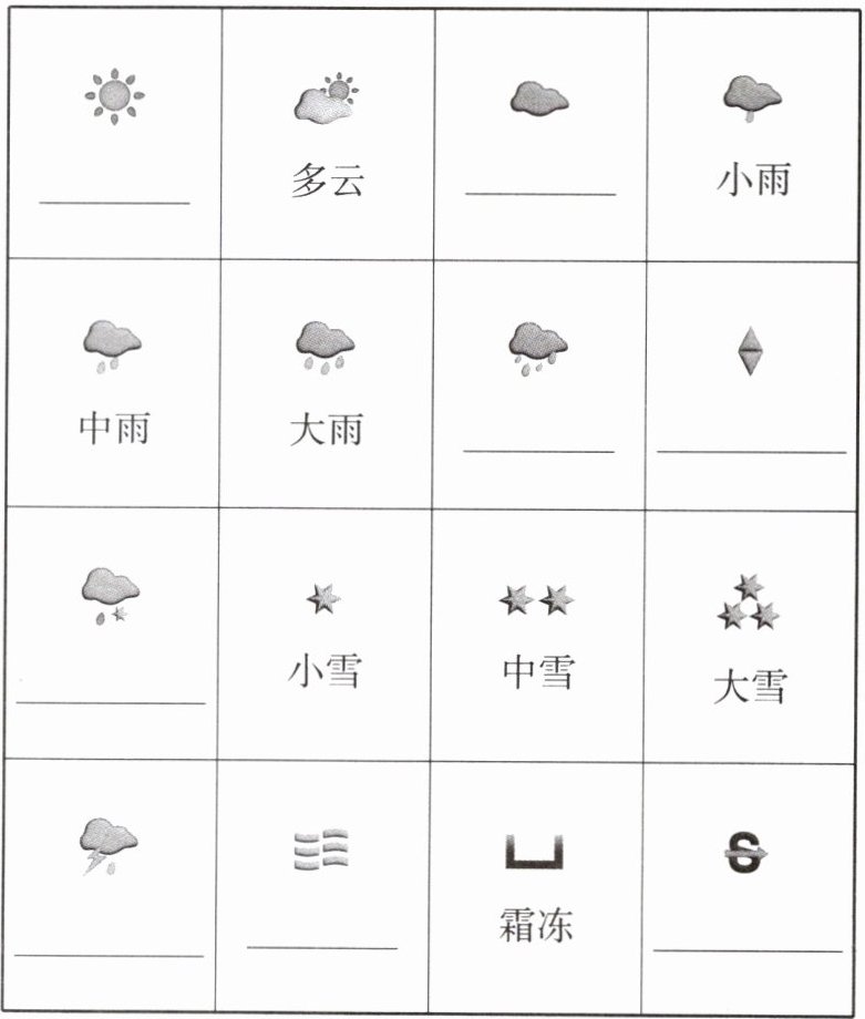 2. 在表中填写天气符号表示的天气。