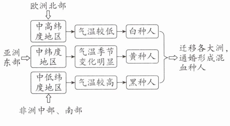 > 世界三大人种的体质特征不同,主要分布地区也不同,可以按下面的方法识记。