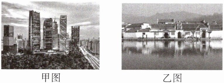 1. 甲、乙两幅图中,哪幅图是城镇景观,哪幅图是乡村景观?说明判断理由。