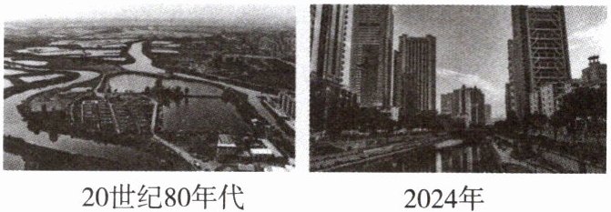 20世纪80年代,渔民村还是深圳众多小渔村中的一个。如今,随着经济持续高速发展,渔民村已经成为深圳这座现代化大都市的一部分。下图为渔民村20世纪80年代和2024年影像,据此回答3~4题。