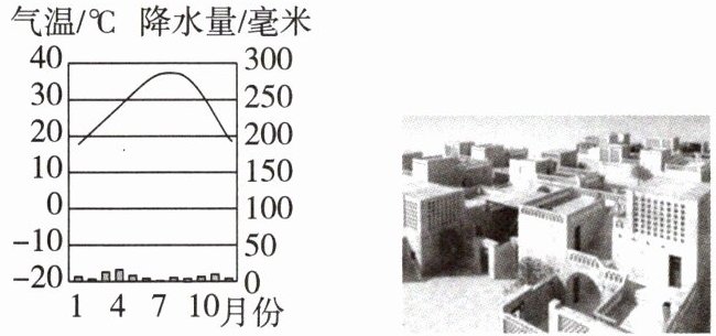 下面两幅图是甲图中A地的气候资料图及传统民居景观图。