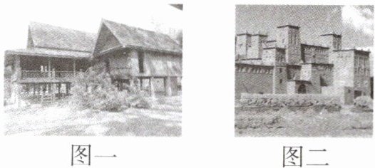 图一为东南亚传统民居图,图二为西亚传统民居图。读图,回答6~7题。