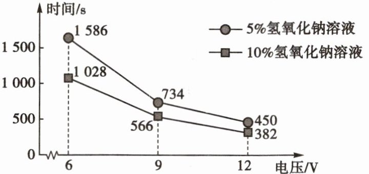①电解溶质质量分数为 5%的氢氧化钠溶液时,改变电压对电解水速率的影响是